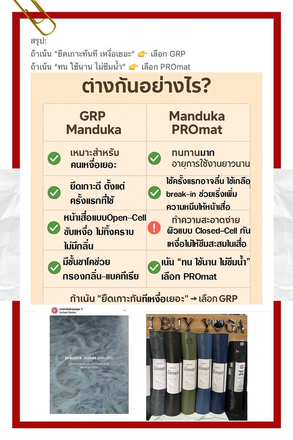 Manduka🐸GRP® Adapt Lite 2.0 Yoga Mat หนา 4 มม. 🧘‍♀️ เสื่อโยคะน้ำหนักเบา พร้อมลุยเหงื่อ ยึดเกาะจริงจัง